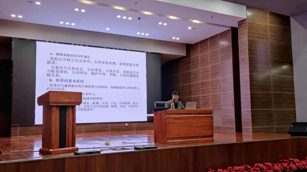 3月23日下午,太阳成集团tyc7111cc在图书馆106报告厅举行民法典学习系列讲座,讲座主题为《当代中国的婚姻家庭制度》。讲座由公司李振宇副教授主讲,公司师生共计80余人参加了此次讲座。