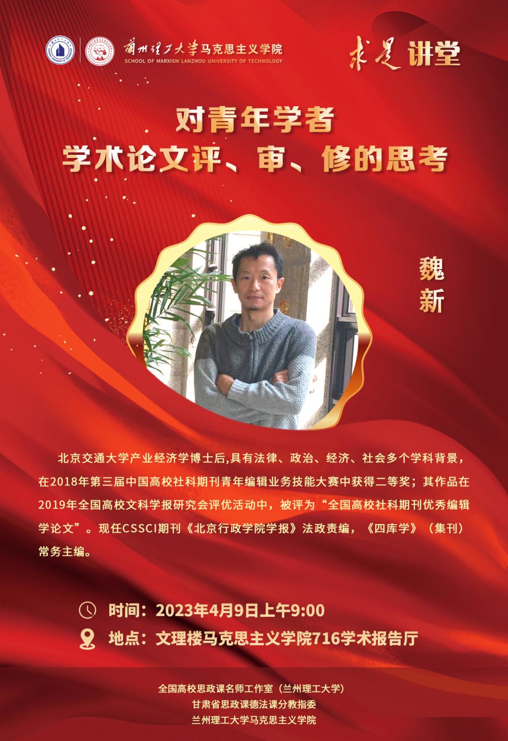 题 目:对青年学者学术论文评、审、修的思考时 间:2023年4月9日上午9:00报 告 人: 魏 新 责 编 北京行政公司学报