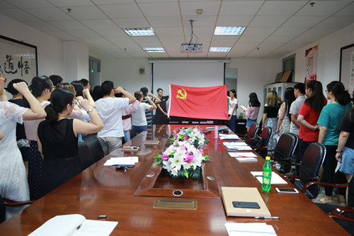 为纪念中国共产党建党97周年,回顾党史,继承和发扬党的光荣传统和优良作风。使党员进一步增强“四个意识”、坚定“四个自信”,根据公司党委《关于开展纪念建党97周年支部主题党日活动的通知》要求,公司研究生党支部于2018年6月27日在公司会议室开展纪念建党97周年主题党日系列活动-“我是党员”集中宣誓活动。公司党总支书记马凤英、副书记陈以庆及研究生支部全体党员共同参与此次活动。