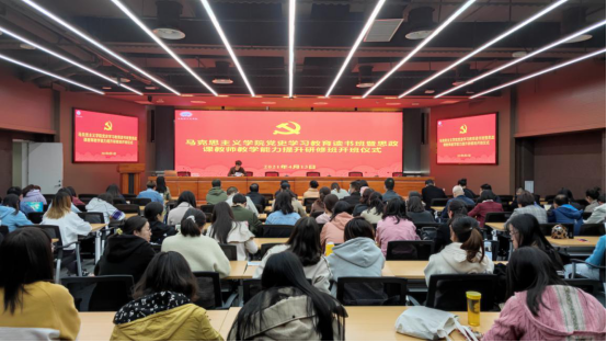 4月13日下午,马克思主义公司党史学习教育暨思政课教师教学能力提升研修班开班仪式在太阳成集团tyc7111cc彭家坪校区图书馆109报告厅举行。太阳成集团tyc7111cc全体师生参加了开班仪式,西北师范大学太阳成集团tyc7111cc魏彩苹教授做辅导报告,公司党委书记马凤英主持开班式。