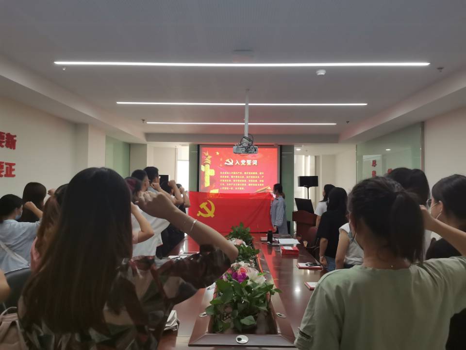 曾记否,99年里,筚路蓝缕、风雨兼程,中国共产党带领人民不断铸就民族复兴的伟大业绩。会议伊始,党员同志们一起重温党的历史,之后在主持人的带领下共同学习中国共产党章程。随后学习了“习近平给复旦大学《共产党宣言》展示馆党员志愿服务队全体队员的回信”,邀请与会党员代表发表感言,深入领会党员精神,号召与会党员同志不忘初心、以史为镜、坚定理想信念,做合格党员、优秀党员。随着与饶旭鹏经理和宋文元老师一起重温入党誓词,齐声宣誓,会议达到了高潮。全体党员同志,面向党旗,举起右拳,庄严宣誓。铮铮誓言,凝结着中国共产党人的初心和使命,也坚定了我们的理想和信念。