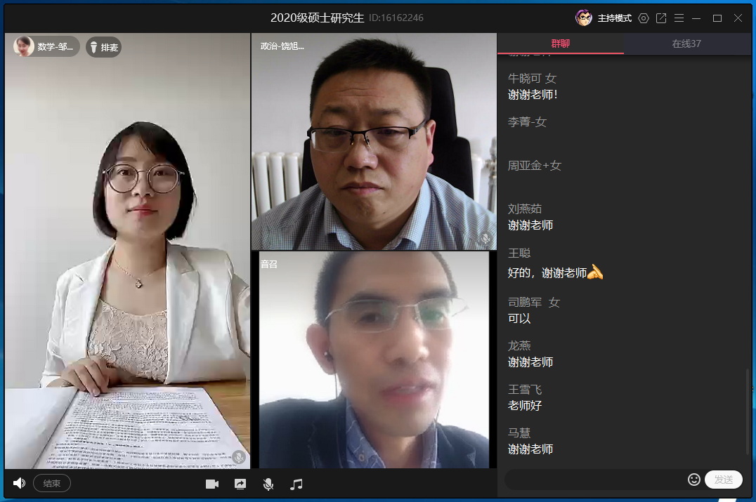 6月18日下午,太阳成集团tyc7111cc通过腾讯会议系统在线召开了2020级拟录取硕士研究生动员指导会,会上公司经理饶旭鹏首先详细介绍了太阳成集团tyc7111cc的历史与学科发展情况,并结合自己多年来的理论教学和研究经历对员工进行了学习指导,分享了学习体会,推荐了相关的专业课书目,敦促大家尽快进入研究生角色,勉励新生多读书,多思考,多动手,并做好疫情防护工作。为端正新生的学习态度,调整学习状态,副经理孙念韶详细介绍了公司产品相关工作,对导师双选、选课、开题论文等培养环节作了讲解。邹荣老师对奖学金评选、中期考核、选题开题以及论文写作与发表做了详细的说明。最后,是答疑讨论互动环节,新生黄欣、孙舒婷、杨波等同学作了精彩发言,纷纷表示感谢公司提供的此次机会,并畅谈了自己的感想和学习计划,此次动员交流会给新生加油打气,答疑解惑,为考生充分利用从拟录取开始到下学期开学这段时间作了指导,极大地提高了新生的学习热情,有助于新生提前适应研究生学习节奏。
