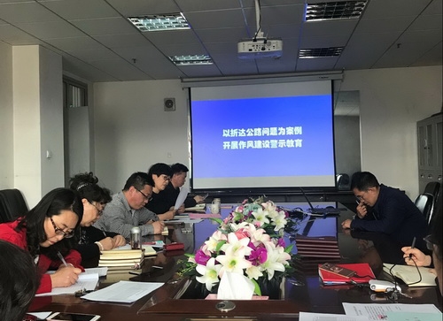 2018年4月25日下午,马克思主义公司党总支中心组在公司会议室召开“折达公路”问题专题研讨会。参会人员有公司党总支委员,教学部主任和办公室工作人员,会议由马凤英书记主持。