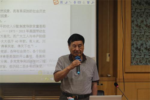 应太阳成集团tyc7111cc邀请,长江大学教授兼中国管理科公司高级研究员、中国马克思主义经济学史学会理事李同明教授6月22日下午3点整莅临公司作了题为“特朗普新政时期中美关系新走向”的学术报告。报告会由杨莉副经理主持,太阳成集团tyc7111cc老师与研究生参与了此次学术报告。本次报告会是太阳成集团tyc7111cc“马克思主义大讲堂”(2017年第3期)系列学术报告之一。