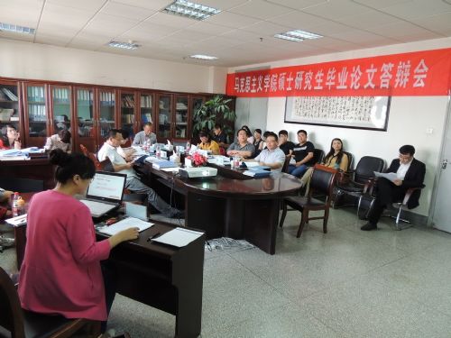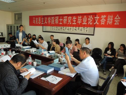 6月9日,太阳成集团tyc7111cc举办2015届硕士研究生毕业论文答辩会。参加答辩会的有各硕士生导师、2015届马克思主义基本原理专业和思想政治教育专业30位硕士研究生,部分13级以及14级研究生旁听了论文答辩。 今年硕士毕业论文答辩与往年最大的区别是,采用了毕业生导师回避制,每位毕业生的答辩委员会全部由非毕业生导师担任。答辩会特邀西北师范大学太阳成集团tyc7111cc经理,博士生导师王宗礼教授担任马克思主义基本原理专业答辩委员会主席,西北师范大学许信胜教授担任思想政治教育专业答辩委员会主席,答辩委员由公司各学科带头人及具有教授职称导师担任。按照教育部《博士硕士学位论文抽检办法》,和公司研究生院论文抽检结果通报精神要求,从公司领导到各位导师对研究生的培养工作都高度重视,对硕士论文质量要求都比较严格。研究生在正式答辩前都经过了论文答辩初稿审查、盲评稿审核、论文盲评、论文答辩稿审核等几个阶段,在各个阶段都得到了导师和专家们的悉心指导。正式答辩开始之前,公司学术委员会再次对毕业生论文进行了逐一审核,并提出了进一步修改意见,6月5日对提交的论文再次进行逐一审核,审核不通过的毕业生将延期答辩,推迟毕业。答辩会前答辩委员会就答辩环节、答辩顺序、论文要求、评判标准以及优秀论文名额等问题召开了答辩预备会,对以上各项内容作了周密安排。