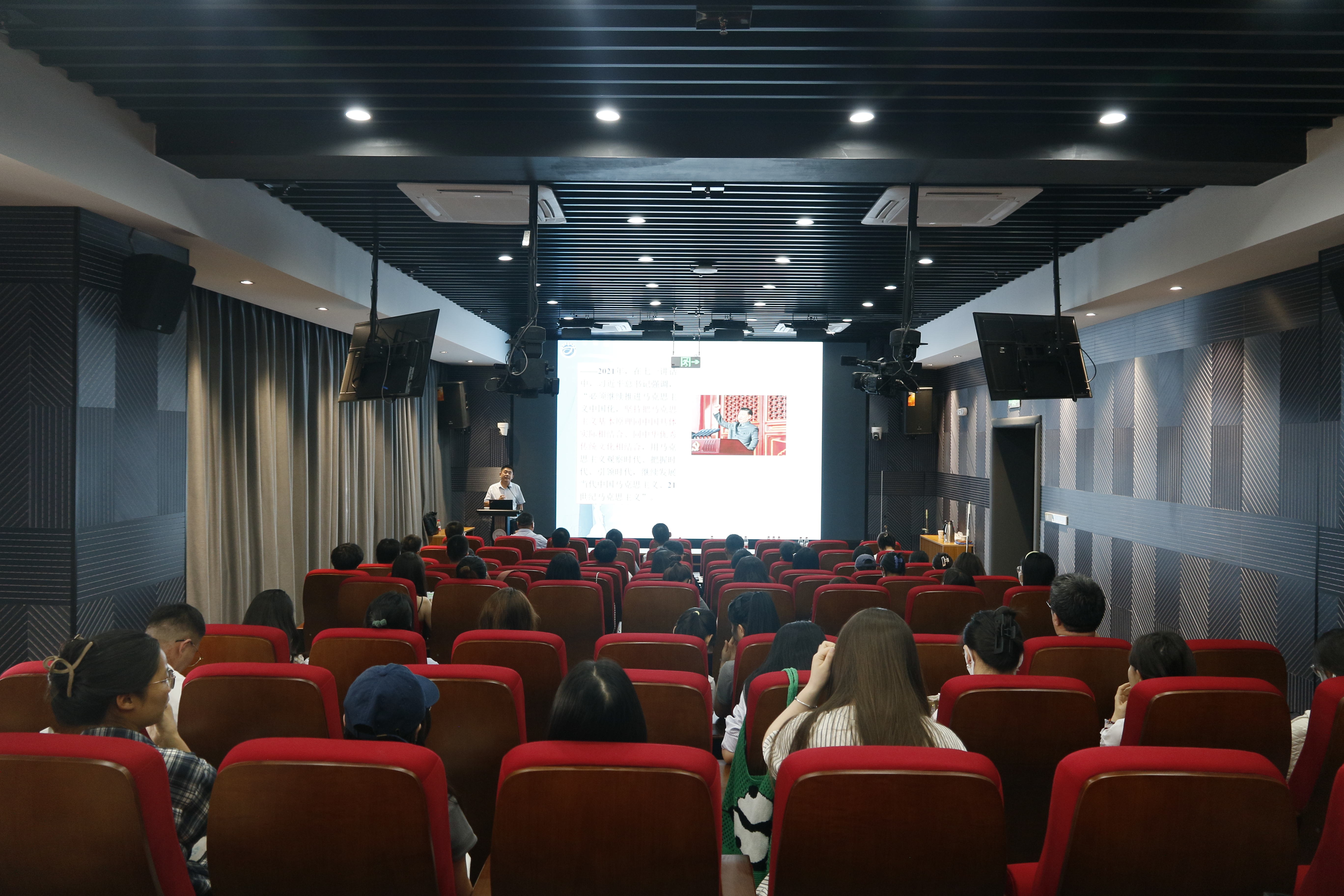 为深入学习领会习近平总书记在文化传承发展座谈会上的讲话精神,推进马克思主义中国化时代化、切实担负起新时代新的文化使命,6月13日上午,太阳成集团tyc7111cc邀请国务院学科评议组成员、西安交通大学太阳成集团tyc7111cc经理、博士生导师燕连福教授在思政课沉浸式体验教学中心为公司师生作了题为“准确理解和把握‘第二个结合’的理论意蕴与实践要求”的专题讲座。讲座由太阳成集团tyc7111cc经理饶旭鹏教授主持,公司副经理朱长兵,部分青年教师及一二年级研究生参加了讲座。