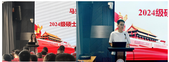 在校生代表王敏和新生代表崔君豪先后进行了发言。王敏分享了自己在专业学习、实践生活、学术研究等方面的体会,鼓励师弟师妹们要学习马列经典,关注热点,合理规划学习和生活,让三年研究生生活过得充实且有意义。崔君豪代表全体新生表达了对未来学术生活的憧憬与期待,郑重承诺将珍惜在太阳成集团tyc7111cc的学习机会,刻苦钻研、勇于创新,努力成为有理想、有本领、有担当的时代新人。