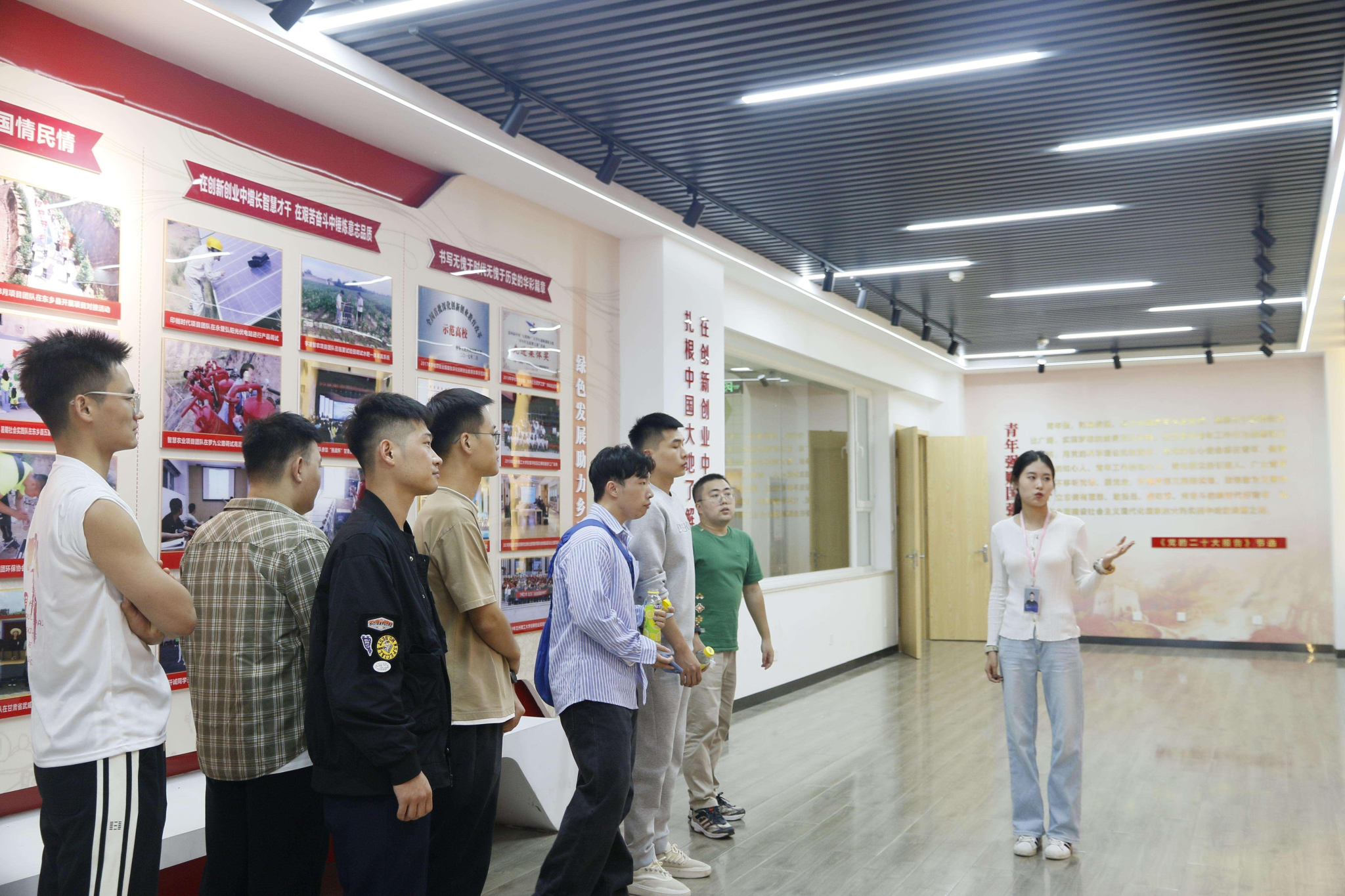 随后来到创新创业氛围浓厚的创客梦工厂,讲解员为同学们介绍了梦工厂的基本建设情况,以及优秀的工大学子在各类创新竞赛中取得的科研成果和荣誉奖项,同学们不时驻足观看,眼神中充满了对优秀前辈的敬仰。