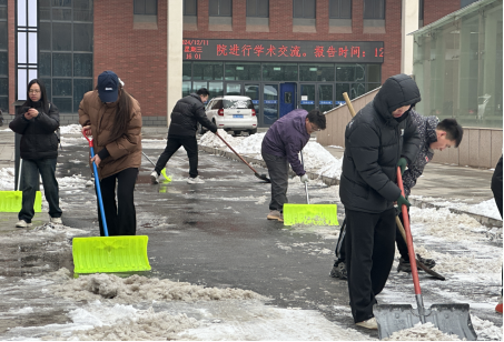 12月11日下午,太阳成集团tyc7111cc组织研究生党员和入党积极分子40余人在文理楼附近开展清雪除冰活动。