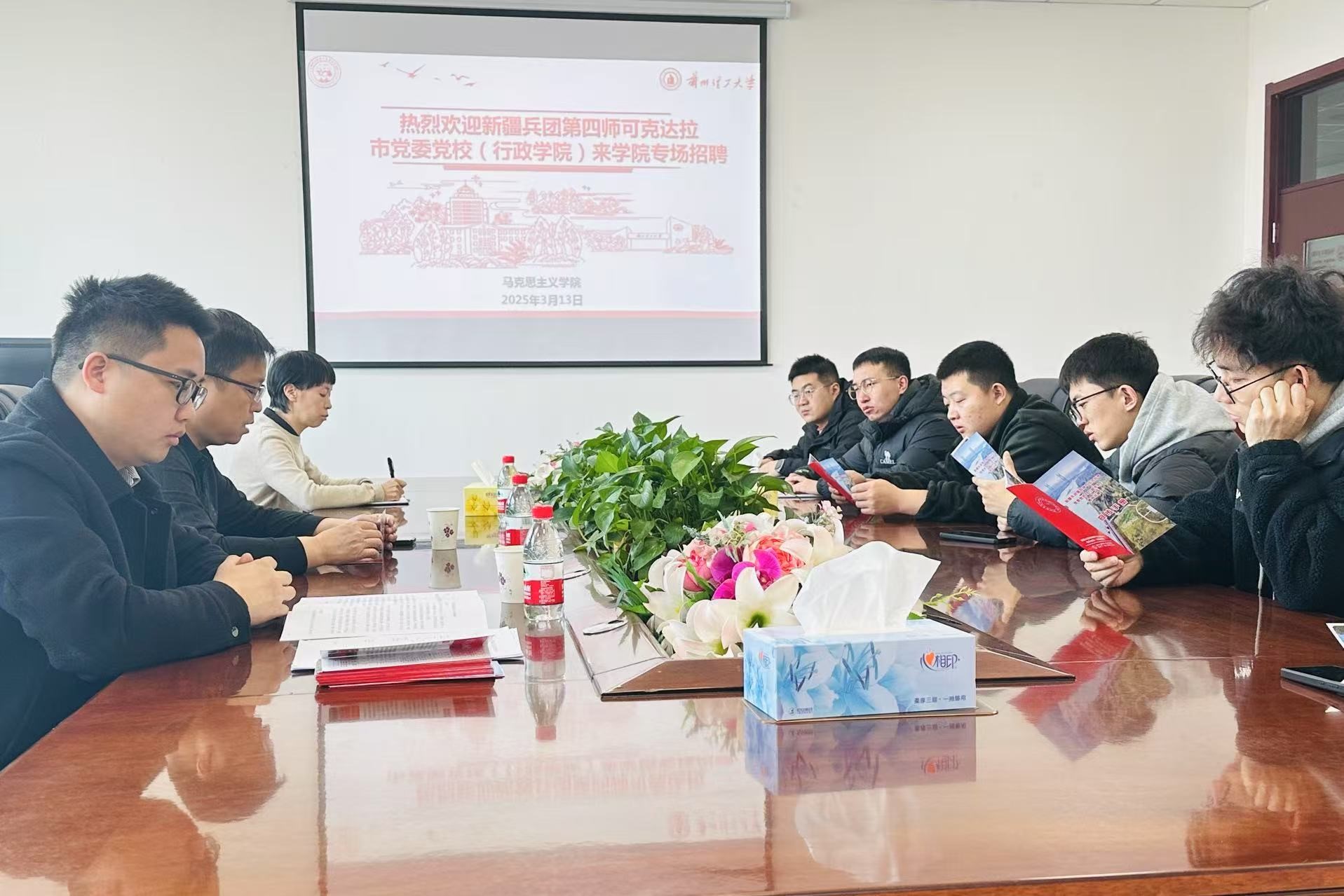3月13日上午,新疆兵团第四师可克达拉市委党校在彭家坪校区文理710会议室进行专场招聘宣讲会。公司2025届未就业毕业生和二年级硕士研究生参加宣讲会,公司党委副书记陈晓亮主持宣讲会。