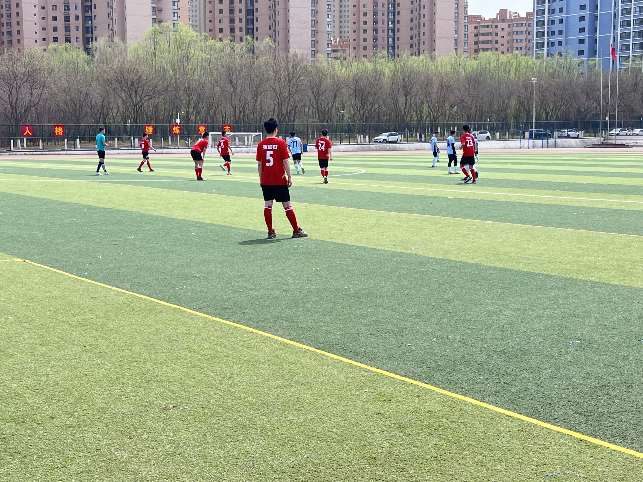 足球赛场上同样精彩,同学们团结配合,努力进球得分,不轻言放弃。带球队员在三人包夹中灵动转身,用马赛回旋躲避,突然起脚抽射,足球裹挟着雷霆直挂球门右上角。守门员飞身侧扑的轨迹与皮球错身而过,球网在重炮轰击下剧烈颤抖并逐渐趋于平静。一场场比赛不仅锻炼了同学们的体魄,更通过队员的团队协作强化了班级凝聚力,体现了“友谊第一,比赛第二”的体育精神。