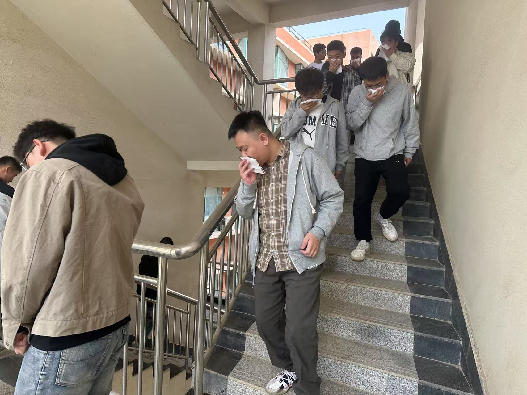 演练开始,随着模拟烟雾装置启动,楼道内瞬间弥漫“浓烟”,同学们反应迅速,用湿毛巾紧捂口鼻,在正确引导下弯腰低姿沿墙右侧单列有序撤离,安全抵达集合点。实操演示环节,工作人员现场示范了灭火器、消火栓等消防器材的正确使用方法,并邀请部分员工进行实际操作,确保大家能够熟练掌握消防器材的操作技能。
