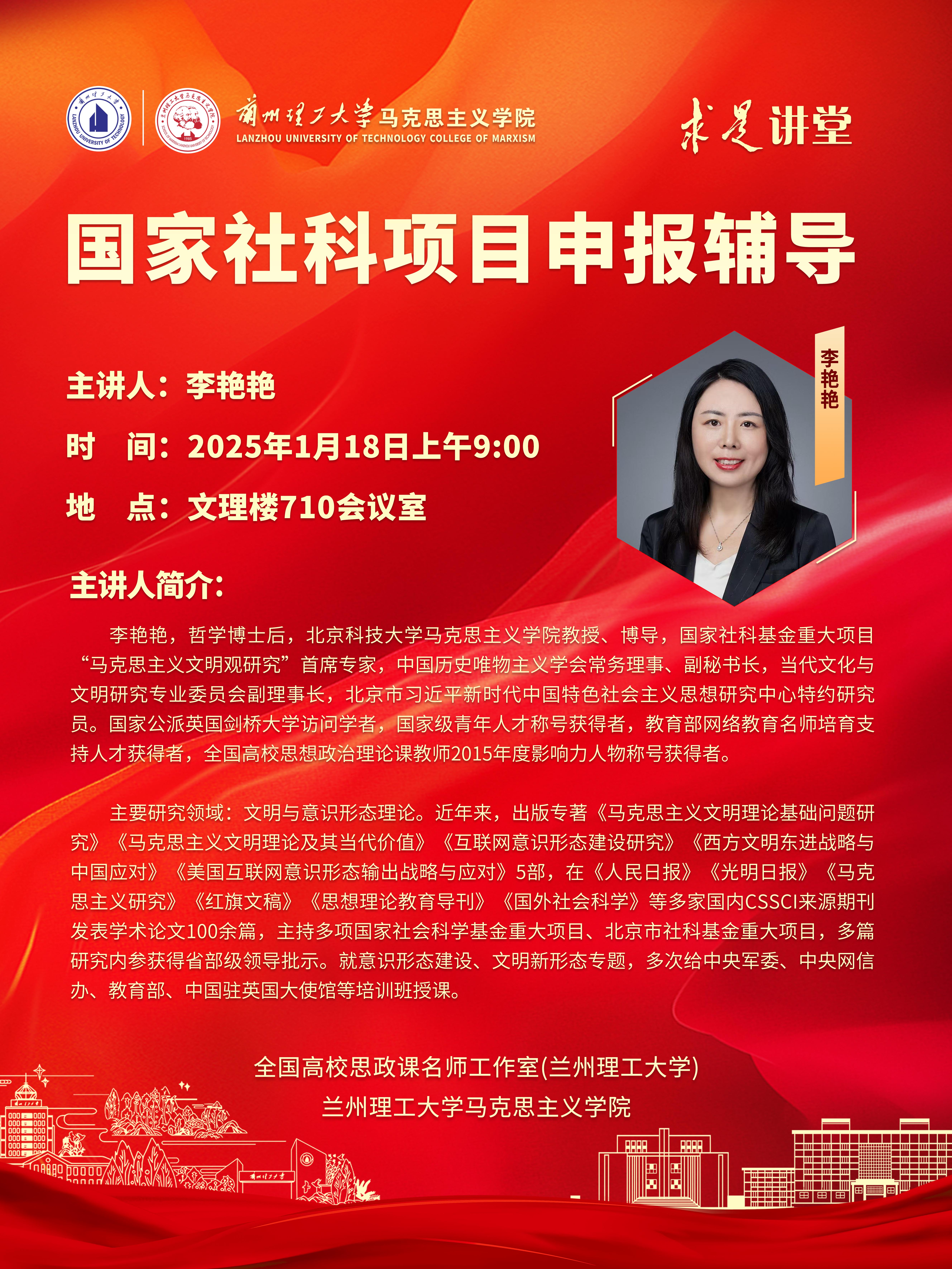 应太阳成集团tyc7111cc邀请,北京科技大学太阳成集团tyc7111cc博士生导师,国家社科基金重大项目“马克思主义文明观研究”首席专家李艳艳教授来公司进行国社科项目专题辅导。
