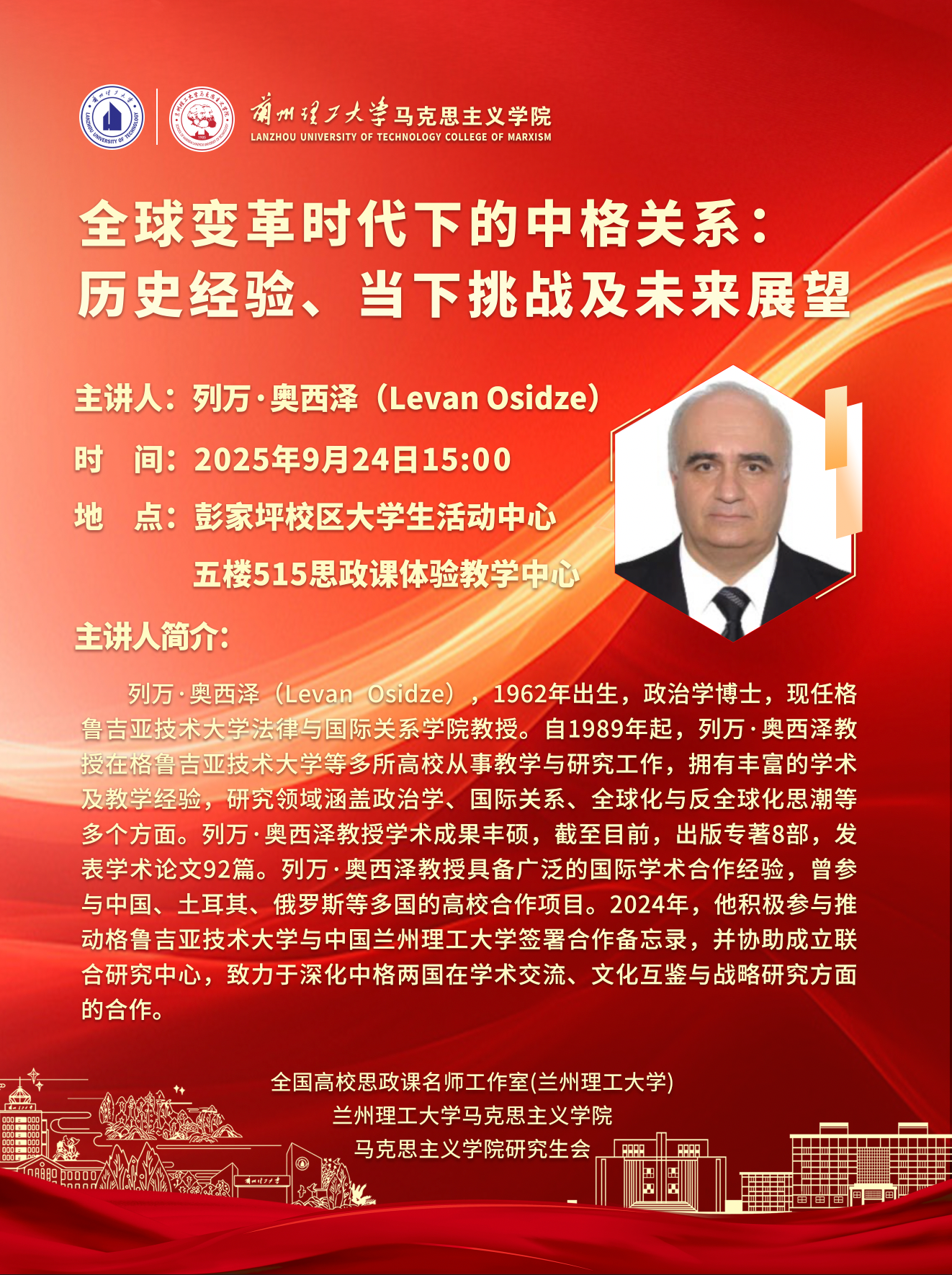 应太阳成集团tyc7111cc邀请,格鲁吉亚技术大学法律与国际关系公司教授列万·奥西泽于9月24日下午为全院师生做学术报告。欢迎各位老师积极参加。